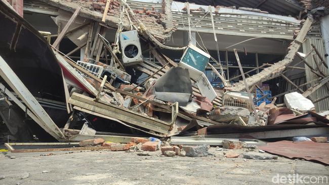 "Tiba-tiba tembok sebelah depan bagian atas toko roboh hingga mengakibatkan 2 orang korban terjatuh," jelas Taufik.