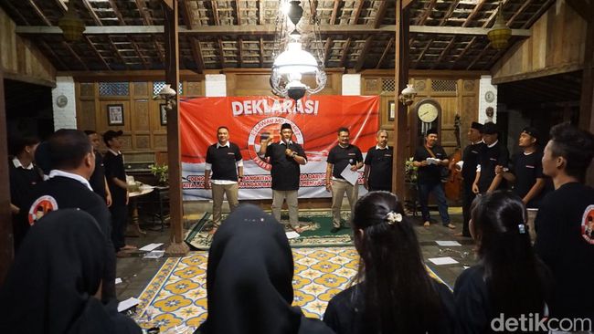 "Kami berangkat dari perahu yang berbeda. Sekarang kami berada di kapal yang sama. Mari kita menuju dermaga kemenangan Prabowo-Gibran. Kami di sini mengumpulkan sekitar 300 orang yang tersebar di seluruh wilayah Mojokerto," terang Teguh kepada wartawan di lokasi deklarasi, Warung Selo Adji, Desa Watesumpak, Trowulan, Mojokerto, Rabu (8/11/2023).