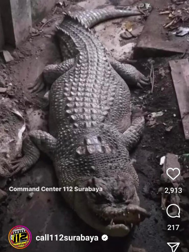 Seekor buaya berukuran 3 meter dievakuasi petugas gabungan dari rumah di Jalan Wonokusumo Wetan IV/6, Surabaya. Diketahui buaya itu telah dipelihara oleh pemilik rumah selama 11 tahun.