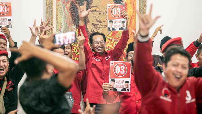 "Merdekaaaa...!!! Akhirnya, Ganjar-Mahfud dapat nomor 3. Alhamdulillah, sesuai harapan kami, akhirnya dapat nomor undian 3," kata Budi Leksono, Wakil Ketua DPC PDIP Surabaya.