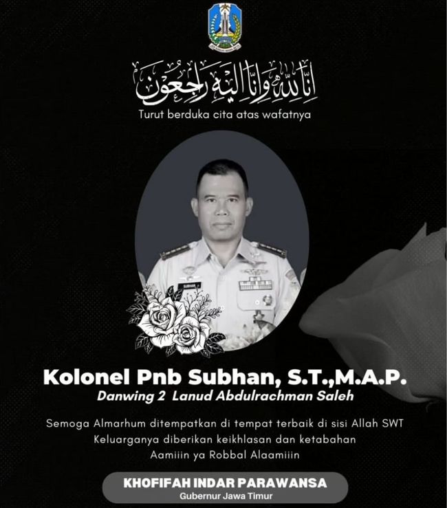 Marsekal Pertama Subhan adalah salah satu awak TNI yang meninggal setelah pesawat Super Tucano jatuh di Pasuruan. Subhan semasa hidup dimata keluarga dikenal memiliki sosok baik.