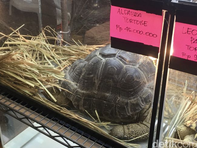 "Untuk satu ekor kura-kura Aldabra dengan panjang kurang lebih 33 cm ini diberi harga Rp 45 juta, biasanya makin besar Aldabra bakal makin mahal harganya, apalagi kura-kura Aldabra ini dikenal kura-kura terbesar di dunia," ucap Tegar kepada detikJatim (18/11/2023).