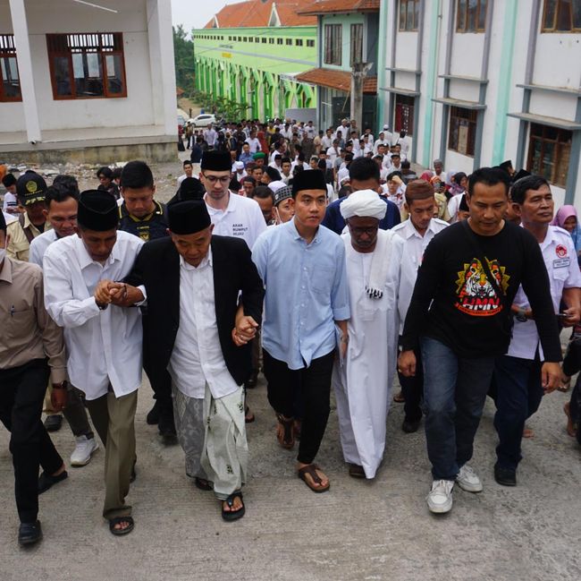 Ribuan santri dan Pengasuh Ponpes Amanatul Ummah KH Asep Saifuddin Chalim berdoa untuk Cawapres nomor urut 2, Gibran Rakabuming Raka. Menurut Kiai Asep, doa tersebut sesuai permintaan Gibran.