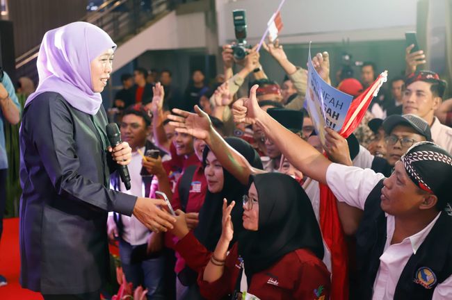Gubernur Jawa Timur Khofifah Indar Parawansa mengapresiasi sebanyak 1.042 Pilar Sosial se-Madura dalam acara Sapa Pilar Kesejahteraan Sosial, di Gedung DBL Arena, Surabaya. Pilar Sosial yang hadir terdiri dari 783 Pendamping Program Keluarga Harapan (PKH), 187 Taruna Siaga Bencana (Tagana), dan 72 Tenaga Kesejahteraan Sosial Kecamatan (TKSK).