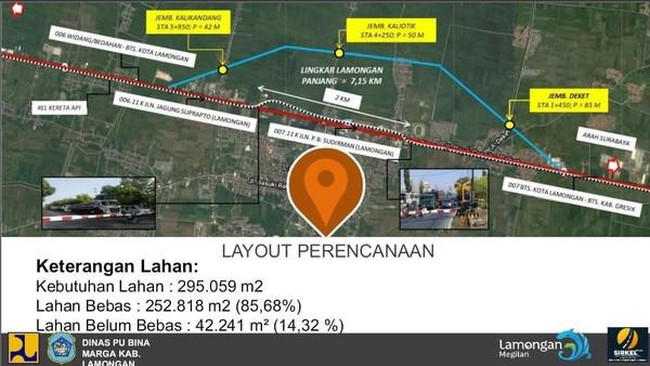 Saat ini, kata Sugeng, yang dibangun ruas jalan antara Desa Plosowahyu hingga ke Kelurahan Sidokumpul di Kecamatan Lamongan. Sugeng mengungkapkan, meski jalan lingkar utara adalah proyek pemerintah pusat, namun Pemkab Lamongan melalui PU Bina Marga tetap mengikuti perkembangan Jalan Lingkar Utara tersebut.