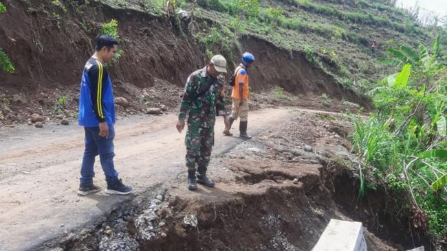 Tak hanya longsor, di beberapa titik juga rawan longsor karena kondisi tanah gembur dan sebagian retak.