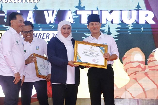 Bupati Trenggalek Mochamad Nur Arifin meraih penghargaan dari Gubernur Jawa Timur, Khofifah Indar Parawansa. Penghargaan ini diberikan dalam Jambore Kehutanan Sosial Jawa Timur di Ubaya Training Center, Trawas, Kabupaten Mojokerto, Selasa (28/11).