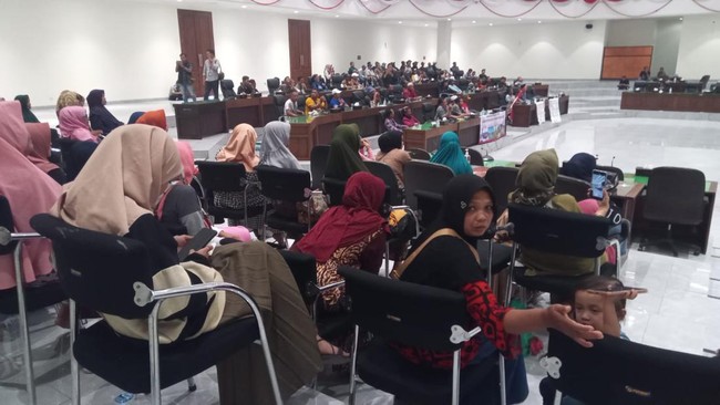 Ratusan warga mendatangi gedung DPRD Bojonegoro dengan menumpang sejumlah kendaraan minibus. Dengan membawa beberapa poster protes hingga tuntutan, warga menyampaikan keluhan ke wakil ketua dewan dan anggota lainnya di ruang paripurna DPRD.