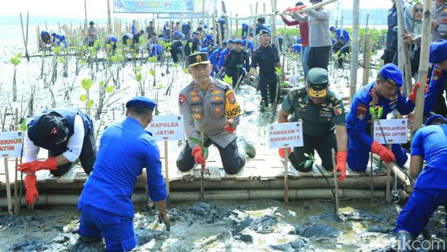 Penanaman tersebut dilakukan oleh Kapolda Jawa Timur Irjen Imam Sugianto bersama Sekdaprov Adhy Karyono serta beberapa pejabat utama dari Kodam V/Brawijaya, Pangkoarmada II Surabaya, bupati Gresik, hingga Kapolrestabes Surabaya dan Kapolres Gresik.