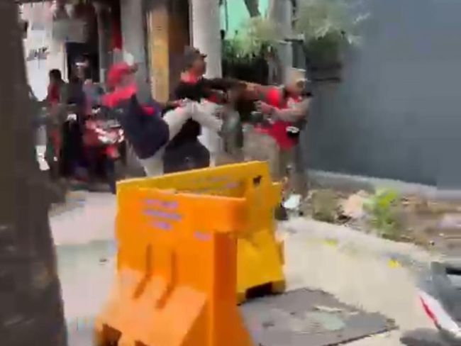Demo tuntut UMK 2024 diwarnai aksi brutal oknum buruh. Mereka menendang dan menginjak-injak Satpol PP Surabaya yang sedang membuka jalan warga agar tidak telat bekerja.