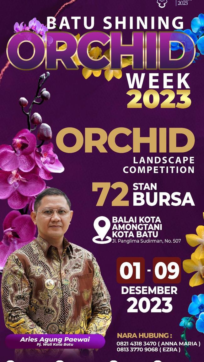 Pameran anggrek tahunan di Kota Batu kembali digelar pada tahun 2023. Event yang bertajuk Batu Shining orchid Week ini digelar mulai 2-9 Desember 2023 di Balai Kota Among Tani Kota Batu.