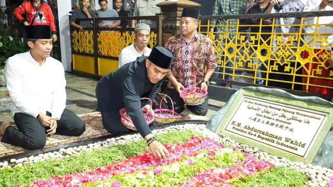 Ketua Umum DPP Partai Solidaritas Indonesia (PSI) Kaesang Pangarep ziarah ke makam Presiden keempat RI Abdurrahman Wahid (Gus Dur). Ia didampingi Sekjen DPP PSI Raja Juli Antoni.