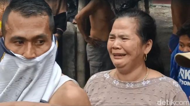 Terlihat seorang perempuan pemilik lapak dagangan menangis di antara para pedagang lain yang terlihat panik. Sebagian dari mereka tampak bingung harus lebih dulu memadamkan api atau menyelamatkan barang.
