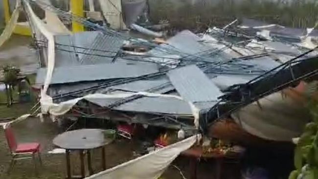 Dalam unggahan video yang beredar di Whatsapp grup berdurasi 18 detik menunjukkan kondisi lokasi acara setelah diterjang angin kencang. Tenda yang dipasang terlihat ambruk menimpa sejumlah meja dan barang lainnya.