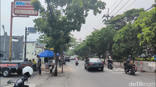 Pantauan di lapangan, terdapat sebuah pohon yang rindang. Pohon tersebut biasa digunakan pedagang kaki lima untuk berteduh di tengah berjualan.