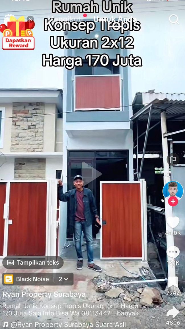 Warganet dihebohkan video promosi rumah berukuran 2 x 12 meter yang dijual dengan harga Rp 170 juta. Video itu diunggah oleh akun TikTok @ryan_property.