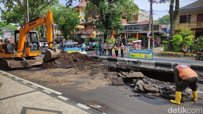Dari pantauan detikJatim, Kamis (7/12/2023) satu alat berat (backhoe) diturunkan ke lokasi untuk pengerukan. Aspal di sekitar titik jalan yang ambles juga diruntuhkan, sehingga membuat lubang semakin membesar.