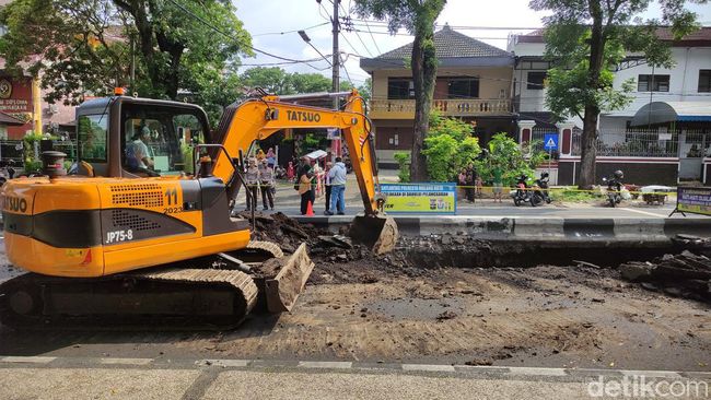 "Bagian bawah jalan itu terdapat gorong-gorong saluran air. Gorong-gorong tersebut sudah lama dan merupakan peninggalan Belanda. Kemungkinan karena sudah tidak kuat menahan beban lalu ambrol disusul bagian jalan yang berada di atasnya," ungkapnya.