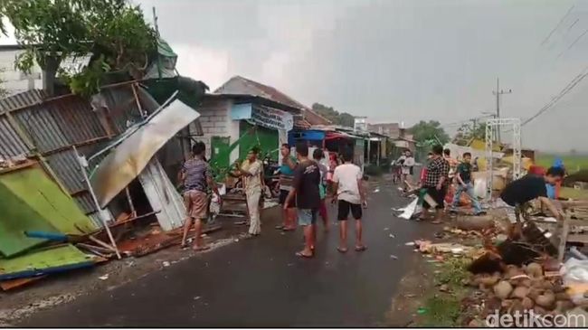 "Sejumlah bangunan semi permanen ambruk hingga berserakan sampai ke jalan di Dusun Kedung Bulus. Menurut Angin kencang terjadi sekitar pukul 16.00 WIB," ujar Dita kepada detikJatim di lokasi, Rabu (13/12/2023).