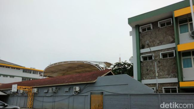 Pantauan detikJatim di SMP Kristen Petra 3, memang terlihat sebuah atap berbahan terpal yang menganga di sisi barat. Atap itu berada di sebuah lapangan basket.