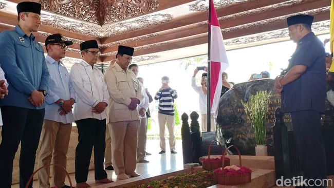 "Beliau (Bung Karno) adalah proklamator, beliau pejuang, dan beliau pahlawan. Jadi kita hormati sebagai pahlawan kita," ujar Prabowo kepada awak media usai berziarah di Makam Bung Karno, Minggu (17/12/2023).