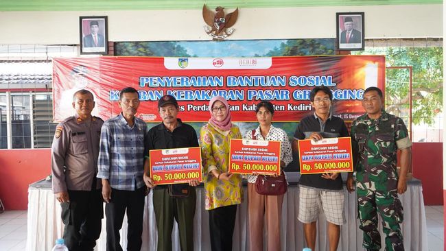 Pemerintah Kabupaten (Pemkab) Kediri melalui Dinas Perdagangan Kabupaten Kediri, menyalurkan bantuan kepada tiga pedagang Pasar Gringging yang menjadi korban kebakaran yang terjadi pada 30 Mei 2023 lalu. Masing-masing pedagang mendapatkan uang sejumlah Rp 50 juta.