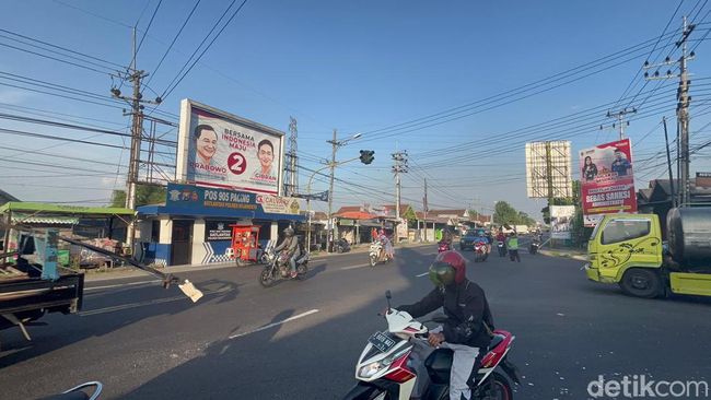 Sementara itu, baliho pasangan capres dan cawapres nomor urut 02, Prabowo Subianto-Gibran Rakabuming Raka nangkring di atas pos 905 Pacing, Sat Lantas Polres Mojokerto. Baliho yang luasnya sekitar 4 x 3 meter persegi ini disangga dengan tiang besi yang berdiri kokoh di samping kanan dan kiri pos polisi tersebut.