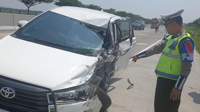 Kecelakaan terjadi di ruas Tol Ngawi-Solo KM 559.400 B. Toyota Innova bernopol L 1158 ABJ menabrak bagian belakang truk nopol K 8389 WK.