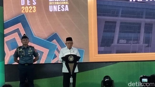 "NU merupakan organisasi terbesar di dunia dan tanggung jawabnya juga besar. Paling tidak ada tanggung jawab keumatan, kebangsaan, ada tanggung jawab kemanusiaan global, tanggung jawab besar di gambarnya (lambang NU), bumi, dunia. Bukan umat dan bangsa Indonesia, tapi dunia," ujar Ma'ruf Amin di Gor Unesa, Sabtu (23/12/2023).
