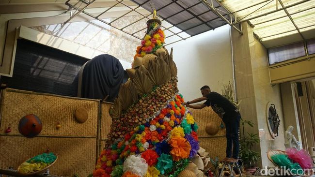 Dari pantauan detikJatim, umat kristianu tampak memasang dan menghias pohon Natal di gereja yang berada di Jalan Residen Sudirman Surabaya. Mereka menggunakan sampah daur ulang dan dedaunan berkonsep eco green.