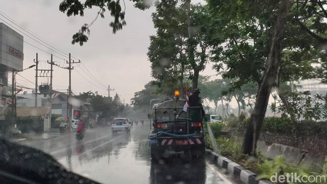 Di tengah perjalanan di kawasan MERR Surabaya itulah dia melihat petugas Dinas Lingkungan Hidup (DLH) dengan mobil tangkinya sedang menyiram tanaman. Masalahnya saat itu hujan.