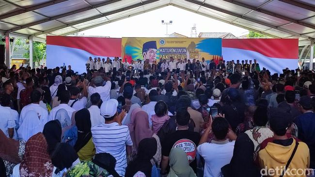 Kedatangan Presiden Joko Widodo disambut antusias warga yang hendak menyampaikan rasa terima kasih secara langsung kepada orang nomor satu di Indonesia tersebut.