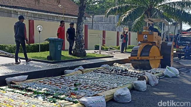 "Untuk pemusnahan dilakukan pada beberapa barang bukti hasil penyitaan selama 2023. Termasuk ribuan botol miras,berbagai merk," kata Kapolres Blitar AKBP Wiwit Adisatria kepada wartawan di mapolres, Jumat (29/12/2023).