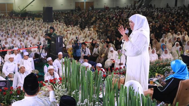 "Ini kalau tidak diberseiringi selawat yang terus dan istikamah tidak mudah tapi provinsi Jawa Timur dengan penduduk terbesar kedua di Indonesia ternyata menurut data BPS adalah provinsi paling aman se-Jawa," kata Khofifah.
