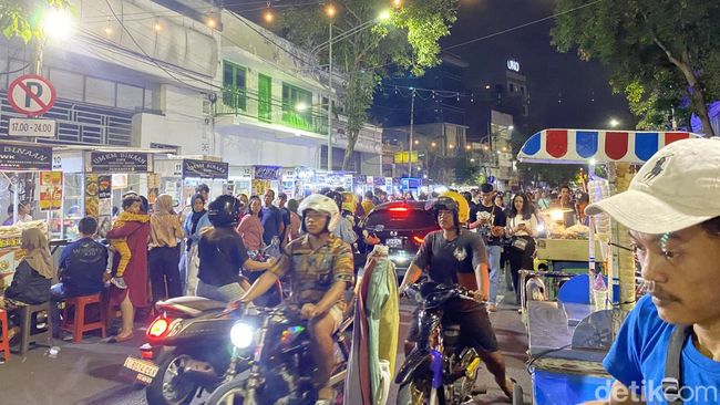 Jalan Tunjungan Surabaya dipadati warga yang ingin merayakan tahun baru. Tempat makan hingga kafe dipenuhi pengunjung.