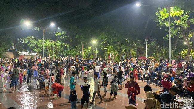 Pantauan detikJatim di Taman Bungkul sekitar pukul 23.00 WIB, ribuan masyarakat berkumpul di sini. Kebanyakan datang bersama keluarga untuk merayakan tahun baru.