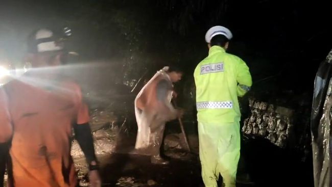 "Saat ini masih pembersihan TNI, Polri, dan BPBD. Tanah longsor itu di tebing milik Perhutani KPH Lawu," papar Joko.