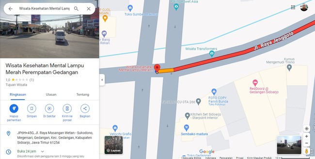 Pantauan di Google Maps, area di Jalan Ahmad Yani arah ke Raya Aloha ini berwarna merah menyala. Demikian halnya di kawasan Jalan Jenggolo, Gedangan. Warna merah jalan ini terpantau hingga bawah flyover Juanda di depan Auto 2000 Raya Aloha.