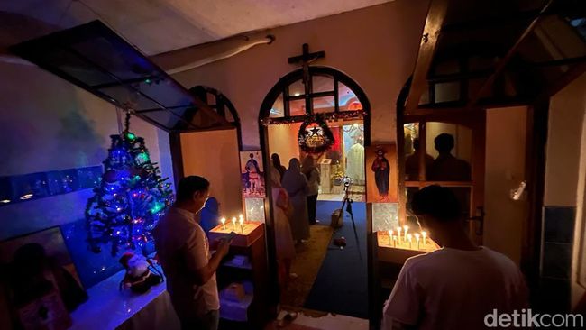 Ibadah misa Natal digelar di kapel yang terletak di dalam rumah Romo Yohanes sekitar pukul 17.00-19.30 WIB. Para jemaat mengikuti jalannya ibadah dengan khusyuk diterangi cahaya lilin. Pernak-penik natal begitu kental menghiasi kapel sederhana ini.