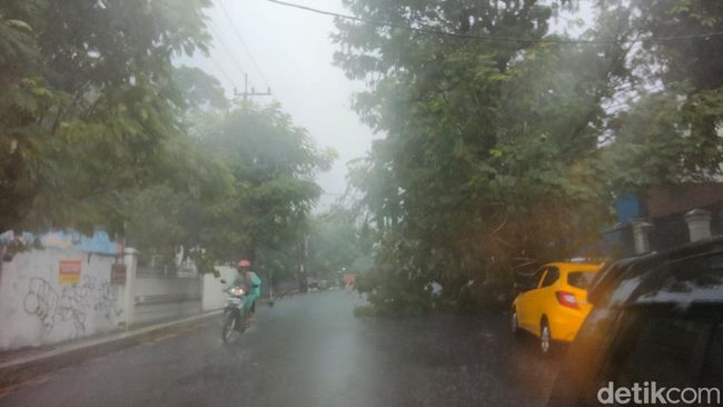 Berdasarkan data BPBD Surabaya, berikut ini 7 titik pohon tumbang di Surabaya imbas hujan lebat disertai angin kencang Selasa sore.