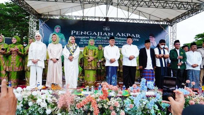 Gubernur Jatim Khofifah Indar Parawansa mengikuti Pengajian Akbar Peringatan Isra Mi'raj Nabi Muhammad SAW yang digelar PAN di Lapangan Cipta Karya, Kalianda, Lampung Selatan. Di sela acara itu dia sampaikan pengakuan dirinya 2 kali maju Pilgub Jatim didukung PAN tanpa mahar.