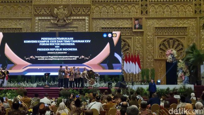 Presiden Joko Widodo (Jokowi) resmi membuka kegiatan Konvensi XXIX dan Temu Tahunan XXV Forum Rektor Indonesia di Universitas Negeri Surabaya (Unesa). Jokowi datang dan didampingi sejumlah menteri, termasuk Gubernur Jatim Khofifah Indar Parawansa.