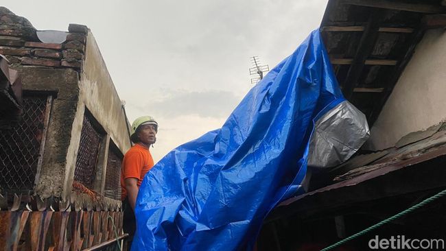 Petugas dari Command Center dan BPBD Surabaya merespons dengan cepat kejadian itu. Para petugas segera memasang terpal sementara untuk menutupi bagian atap rumah yang ambruk.