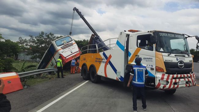 "Medannya agak susah, karena bus keluar jalur tol. Apalagi mobil derek dari kita nggak kuat," kata Tita kepada detikJatim, Kamis (18/1/2024).