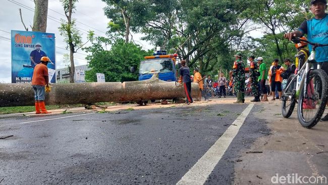 "Sampai sekarang petugas masih melakukan pemotongan pohon yang tumbang itu, supaya akses lalu lintas yang terhambat bisa kembali diakses," tandasnya.