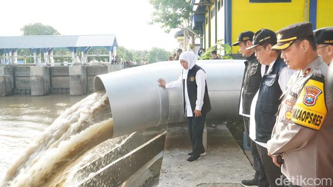 "Intinya kami itu how to solve the problem. Ketika kami bilang ke Pak Yuhronur, 'pak penyebab banjir yang bisa signifikan diatasi apa?' ternyata bilang di sini (Pompa Banjir Kuro)," ujar Khofifah usai peresmian pompa banjir Kuro, Senin (22/1/2023).