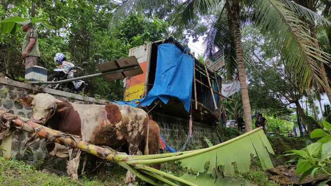 "Diblong oleh kendaraan dari arah bawah, sapinya oleng sehingga truk tidak bisa dikendalikan," kata Biladudin kepada wartawan di lokasi, Rabu (24/1/2024).