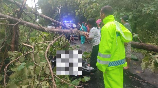 Hujan deras disertai angin kencang yang melanda Ngawi menyebabkan pohon tumbang. Tragis, pohon tumbang tersebut ditabrak seorang pengendara motor hingga tewas.