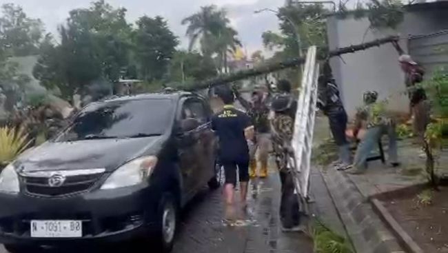 "Jadi awalnya hujan deras terus hujan es dan kemudian hujan angin. Pertamanya ada baliho di seberang jalan itu jatuh, baru gak lama pohonnya tumbang," ujarnya saat ditemui detikJatim, Kamis (25/1/2024).