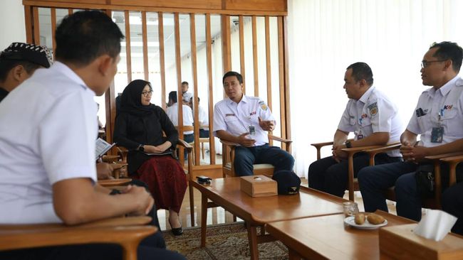 Kepala PT KAI Daerah Operasi (Daop) IX Jember, Buntar Ris Wirawan bersama jajaran saat bertemu Bupati Ipuk Fiestiandani di Lounge Pelayanan Publik Pemkab Banyuwangi, Kamis (25/1/2024).